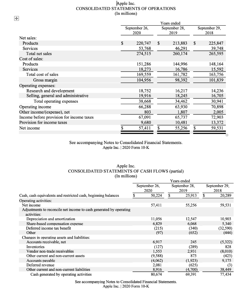 Apple income statement 2020. CONDENSED CONSOLIDATED STATEMENTS OF CASH FLOWS Unaudited In millions Twelve Months Ended September 26 2020 September 28 2019 Cash cash equivalents and restricted cash beginning balances 50224 25913 Operating activities. Get the detailed quarterlyannual income statement for Apple Inc. FY 21 Third Quarter Results.